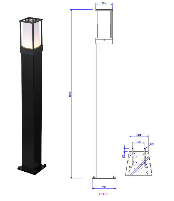 MATER|AL(¼ÒÀç) : Aluminium Die Casting Body PMMA cover/PC cover DIFFUSER bolt/nut stainless steel SIZE(mm) : W106 x D106 x H1,050 LAMP : POWER LED 4W VOLTAGE : 220V COLOR : Warm White / White ( ¡î ) SERVICE(¿ëµµ) : Plaza, Park, Lawn, Residential areas (¡Øµî±â±¸ »ö»ó, Ä¡¼ö µî »ç¾çÀÌ Á¶±Ý ´Ù¸¦ ¼ö ÀÖ½À´Ï´Ù)