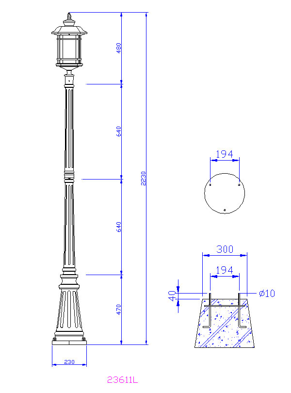 MATER|AL(¼ÒÀç) : Aluminium Die Casting Body PMMA cover/PC cover DIFFUSER bolt/nut stainless steel SIZE(mm) : H: 2,230 LAMP : LED 10W(¡¾) VOLTAGE : 220V / Á֯ļö(F) : 50~60 Hz ¿ª·ü (PF) : >0.95 COLOR : Warm White / Pure White ( ¡î ) LED BRIGHTNESS : Pure White 5300~6000K (Typ 5600K) Warm White 2900~3200K (Typ 3000K) COLOR RENDERING INDEX : CRI 80 ÀÌ»ó Life Span : 50,000 Hr (ȯ°æ¿¡µû¶ó ´Ù¸§) SERVICE(¿ëµµ) : Plaza, Park, Lawn, Residential areas
