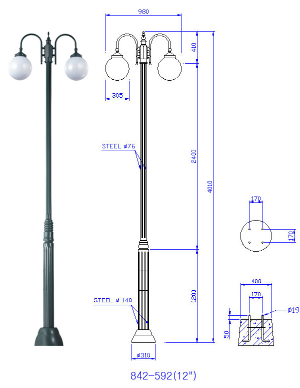 MATER|AL(¼ÒÀç) : Aluminium Die Casting Body PMMA cover/PC cover DIFFUSER bolt/nut stainless steel SIZE(mm) : W980 x H4,010 LAMP : LED 30Wx2EA VOLTAGE : 220V / Á֯ļö(F) : 50~60 Hz ¿ª·ü (PF) : >0.95 COLOR : Warm White / Pure White ( ¡î ) LED BRIGHTNESS : Pure White 5300~6000K (Typ 5600K) Warm White 2900~3200K (Typ 3000K) COLOR RENDERING INDEX : CRI 80 ÀÌ»ó Life Span : 50,000 Hr (ȯ°æ¿¡µû¶ó ´Ù¸§) SERVICE(¿ëµµ) : Plaza, Park, Lawn, Residential areas