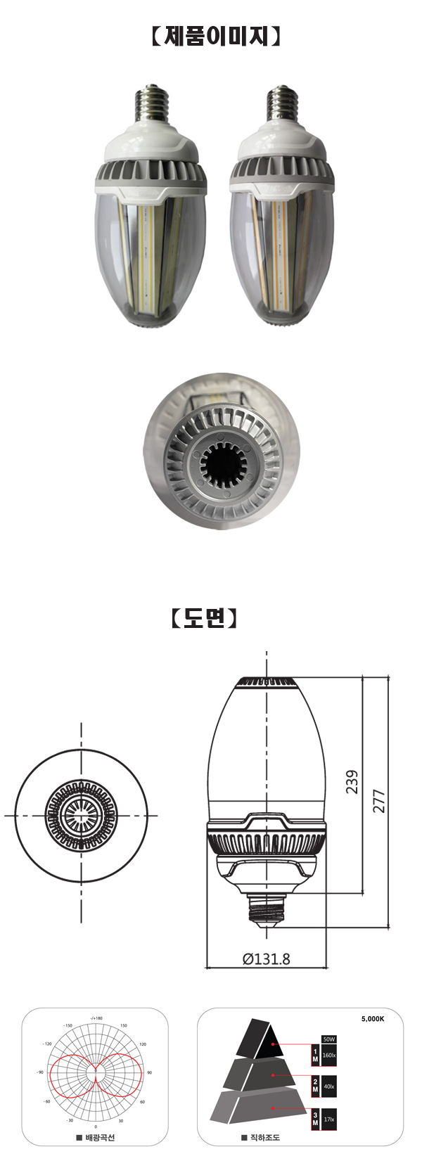¸ðµ¨¸í : RB SFD-0502 ¼ÒºñÀü·Â :LED 50W Àü¾Ð : 100 ~ 240V (50Hz/60Hz) ¿ª·ü : 90ÀÌ»ó »ö¿Âµµ : 3,000K / 5,000K Ãѱ¤¼Ó : 3,250Lm / 4,750Lm ±¤È¿À² : 65lm/w / 95lm/w ¿¬»ö¼º : 80ÀÌ»ó ±Ô°Ý(mm) : ¨ª131.8 x 277(239) ¹«°Ô : 1.2kg ¼ÒÄÏ : E39 base ¼ö¸í : 50,000½Ã°£ (»ç¿ëȯ°æ¿¡ µû¶ó ´Ù¸¦ ¼ö ÀÖ½À´Ï´Ù)
