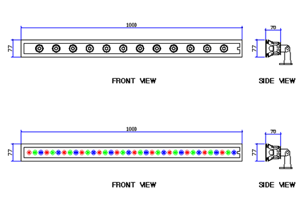 MATERIAL : BODY : ALUMINIUM DIFFUSER : TEMPERED GLASS / PC LED TYPE : 1W POWER LED * 36EA (/18EA) etc.... - ±¹»ê¹ÝµµÃ¼ LENS ANGLE : 10¢ª , 30¢ª , 60¢ª , 120¢ª COLOR : R, G, B, Y, A, WW, CW, RGB Full Color (16,777,216 COLOR) IP RATING : IP66 VOLTAGE : DC24V COLOR CONTROL : no need additional controller, Group control available wtih Master-Slave ´Üµ¶¿¬Ãâ °¡´É(º°µµÀÇ Á¦¾î±â ÇÊ¿ä ¾øÀ½) Master-Slave¿¡ ÀÇÇÑ Group ¿¬Ãâ CONTROL : Protocol-DMX512, RS-485 System : Support both way DMX-512 and selected S/W control WEIGHT : 2.5KG (L1000À϶§)