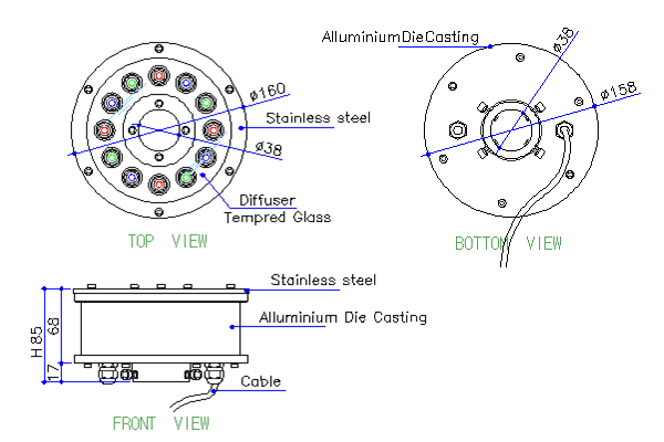 BODY : STAINLESS STEEL COVER & Aluminium Die Casting BODY DIFFUSER : TEMPERED GLASS POWER : 12W ÀÌÇÏ | LENS ANGLE : 10¢ª , 30¢ª , 60¢ª , 120¢ª COLOR : R, G, B, Y, A, WW, CW, RGB VOLTAGE : DC24V ¶Ç´Â DC12V (¡Øµî±â±¸ »ö»ó, Ä¡¼ö µî »ç¾çÀÌ Á¶±Ý ´Ù¸¦ ¼ö ÀÖ½À´Ï´Ù)