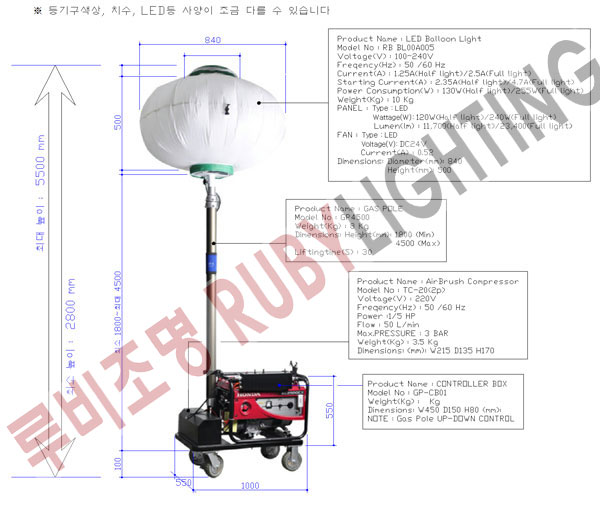 LED BALLOON LIGHT (LEDdz¼±Á¶¸í) : LEDÀÛ¾÷µîÀ̵¿½ÄÂ÷·® (RB ST12-3-1)(RB BL00A005) LEDÀÛ¾÷µî½ºÅĵå (Gas Pole, Pneumatic) dz¼± ¥Õ840 H2000 (max. H5M) ¡Ø»ó¼¼ »ç¾çÀº Á¶±Ý ´Ù¸¦ ¼ö ÀÖ½À´Ï´Ù