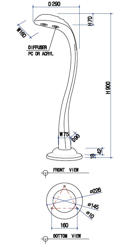 POWER(W) : 4W VOLTAGE : 220V / Á֯ļö(F) : 50~60 Hz SIZE : H 900 (mm) COLOR : Warm White / Pure White ¼±Åà ( ¡î ) SERVICE(¿ëµµ) : Plaza, Park, Lawn, Residential areas