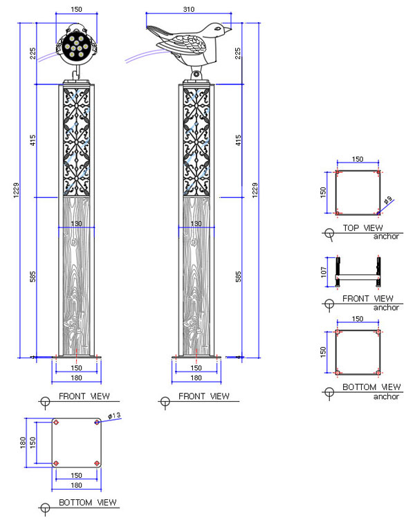 MATER|AL(¼ÒÀç) : Aluminium DIE CASTING OR AL BODY PC OR ACRYL OR GLASS DIFFUSER LAMP(Àü±¸) : AC220V LED 12W (LEDÀܵðµî) + LED 27W (LEDÅ«»õ) COLOR : White (ÁÖ±¤»ö) , Warm White (Àü±¸»ö) ¼±Åà (±âº»: ÁÖ±¤»ö) SIZE : W310 x D180 x H1229 mm (µµ¸éÂü°í) SERVICE(¿ëµµ) : Plaza, Park, Lawn, Residential areas