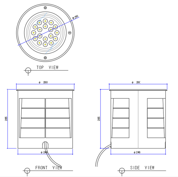 MATERIAL : BODY : AL DIE CASTING, STS, PVC etc DIFFUSER : TEMPERED GLASS POWER(W) : 18W VOLTAGE(V) : DC24V CCT : Warm White, White WEIGHT : 7.2 KG