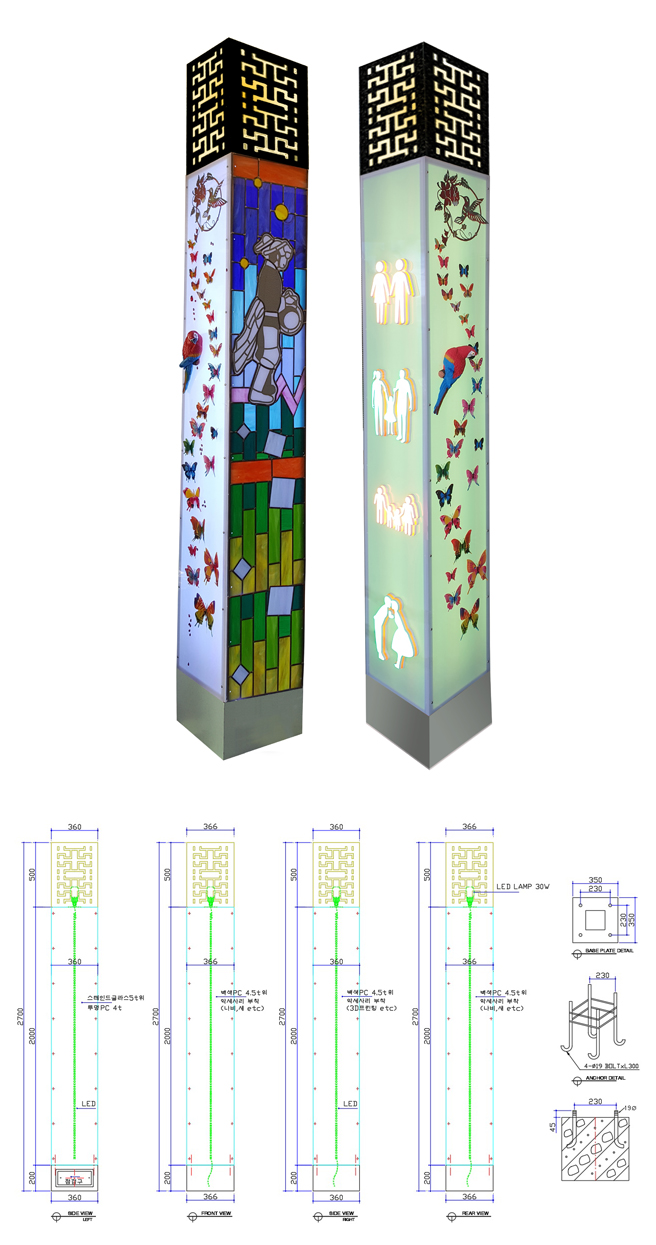 Á¦Ç°¸í : LED°ø¿øµî,Á¤¿øµî,¿ÁÖµî | LED°æ°üÁ¶¸í Á¦Ç°¹øÈ£ : RB 3DP-BFL4 MATERIAL : AL, PC, STS, ½ºÅÙµå±Û¶ó½º etc POWER(W) : ¿ÁÖµî : 80W (20Wx4EA), ¸ÇÀ§ ¹®ÁÖµî : 30W VOLTAGE(V) : ¿ÁÖµî : DC12V, ¸ÇÀ§ ¹®ÁÖµî : AC220V SIZE(mm) : W366 D360 H2700 CCT : ¿ÁÖµî : RGB, ¸ÇÀ§ ¹®ÁÖµî : WARM WHITE (±âº»)