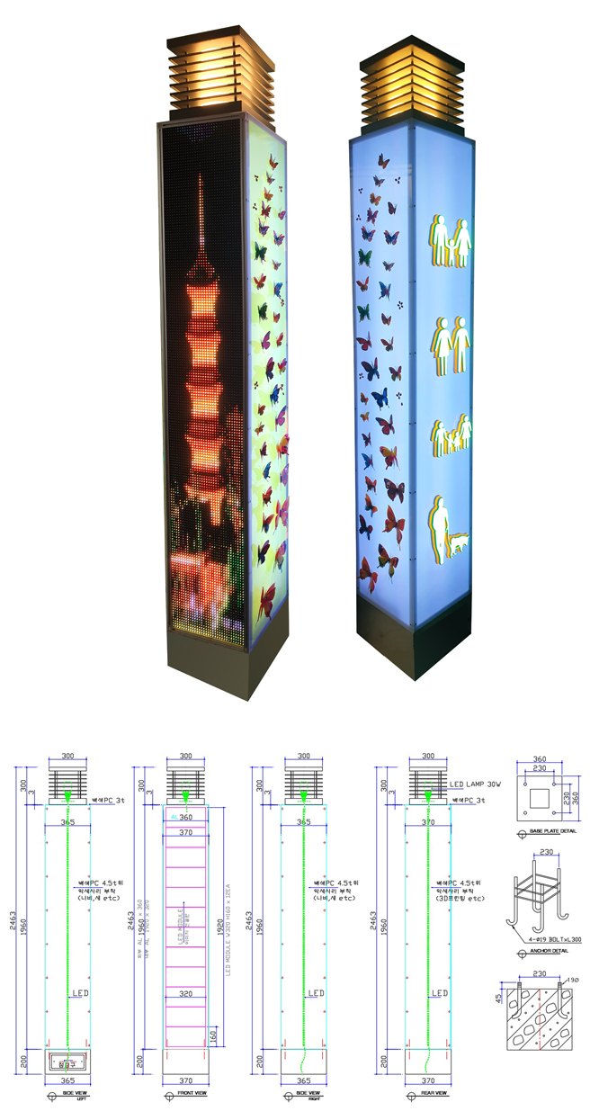 Á¦Ç°¸í : LED°ø¿øµî,Á¤¿øµî,¿ÁÖµî | LED°æ°üÁ¶¸í Á¦Ç°¹øÈ£ : RB 3DP-BFL5 MATERIAL : AL, PC, STS, Àü±¤ÆÇ etc POWER(W) : ¿ÁÖµî : 80W (20Wx4EA), ¸ÇÀ§ ¹®ÁÖµî : 30W VOLTAGE(V) : ¿ÁÖµî : DC12V, ¸ÇÀ§ ¹®ÁÖµî : AC220V SIZE(mm) : W370 D365 H2463 CCT : ¿ÁÖµî : RGB, ¸ÇÀ§ ¹®ÁÖµî : WARM WHITE (±âº»)