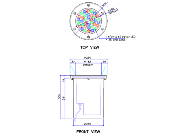 BODY : PLASTIC RECESSED BOX / STS FRAME / Aluminium Die Casting BODY DIFFUSER : TEMPERED GLASS POWER : 54W(3W*18EA) / 36W (1W*36EA)... LENS ANGLE : 10¢ª , 30¢ª , 60¢ª , 120¢ª COLOR : R, G, B, Y, A, WW, CW, RGB IP RATING : IP65 VOLTAGE : AC 220V / DC24V / DC12V (¡Øµî±â±¸ »ö»ó, Ä¡¼ö µî »ç¾çÀÌ Á¶±Ý ´Ù¸¦ ¼ö ÀÖ½À´Ï´Ù)