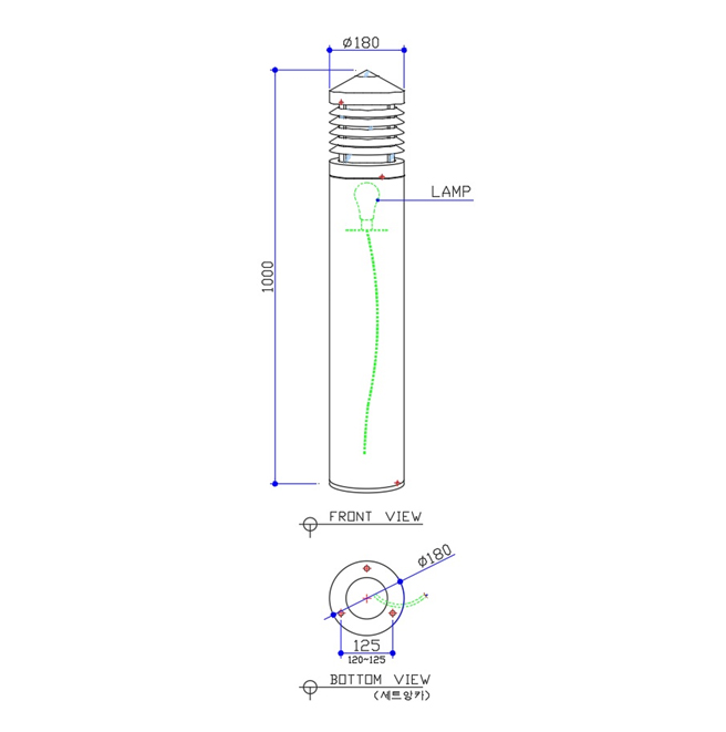 Á¦Ç°¸í : LEDº¼¶óµåµî|Á¤¿øµî|Àܵðµî / °æ°üÁ¶¸í Á¦Ç°¹øÈ£ : RB BACLB304G Å©±â : ¥Õ180 H1000 mm (µµ¸éÂü°í ) MATER|AL(¼ÒÀç) : AL or ALDC BODY PC DIFFUSER LAMP(Àü±¸) : AC220V LED 12W COLOR : White (ÁÖ±¤»ö) , Warm White (Àü±¸»ö) ¼±Åà SERVICE(¿ëµµ) : Plaza, Park, Lawn, Residential areas