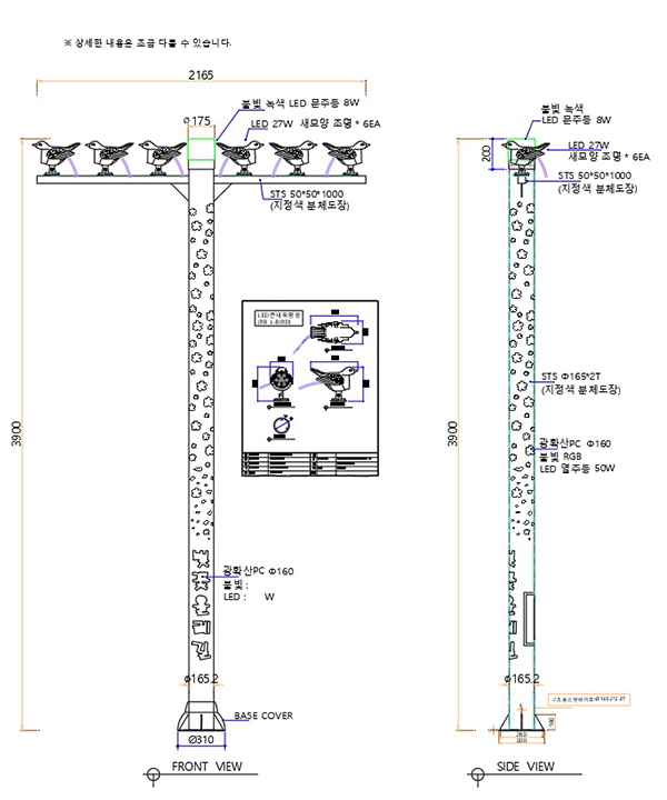 ¿ëµµ : °ø¿ø, »êÃ¥·Î, ±¤Àå µîÀÇ LED°æ°üÁ¶¸í ¿Ü ±âŸ MATERIAL : BODY : STS / ºÐüµµÀå DIFFUSER : Æú¸®Ä«º¸³×ÀÌÆ® POWER(W) : ¿ÁÖµî 50W¡¾, »õÁ¶¸í 162W(27Wx6EA), ¹®ÁÖµî 8W VOLTAGE(V) : AC220V/DCV CCT : White, Warm White, RGB