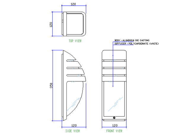 BODY : Aluminium Die Casting BODY DIFFUSER : polycarbonate