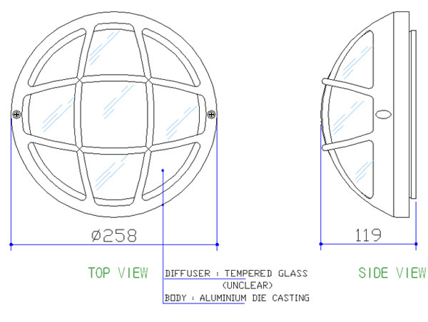BODY : Aluminium Die Casting BODY DIFFUSER : TEMPERED GLASS