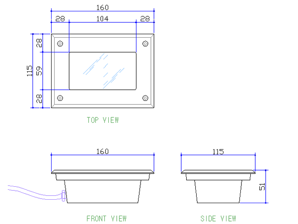 BODY : PLASTIC RECESSED BOX / STS FRAME / Aluminium Die Casting BODY DIFFUSER : TEMPERED GLASS POWER : 5W ÀÌÇÏ Lamp Color : Warm White / White / R. G. B VOLTAGE : 220V / 12V / 24V LENS ANGLE : 65¢ª / 130¢ª (¡Øµî±â±¸ »ö»ó, Ä¡¼ö µî »ç¾çÀÌ Á¶±Ý ´Ù¸¦ ¼ö ÀÖ½À´Ï´Ù)