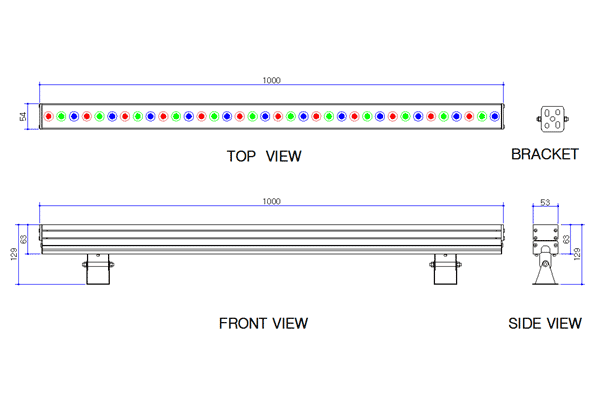 MATERIAL : BODY : ALUMINIUM ¾ÐÃâ DIFFUSER : TEMPERED GLASS / PC LED TYPE : 1W (3W) POWER LED * 36EA (/18EA) etc.... - ±¹»ê¹ÝµµÃ¼ LENS ANGLE : 10¢ª , 30¢ª , 60¢ª , 120¢ª COLOR : R, G, B, Y, A, WW, CW, RGB Full Color (16,777,216 COLOR) IP RATING : IP66 VOLTAGE : DC24V COLOR CONTROL : no need additional controller, Group control available wtih Master- Slave ´Üµ¶¿¬Ãâ °¡´É(º°µµÀÇ Á¦¾î±â ÇÊ¿ä ¾øÀ½) Master-Slave¿¡ ÀÇÇÑ Group ¿¬Ãâ CONTROL : Protocol-DMX512, RS-485 System : Support both way DMX-512 and selected S/W control WEIGHT : 2.5KG (L1000À϶§)