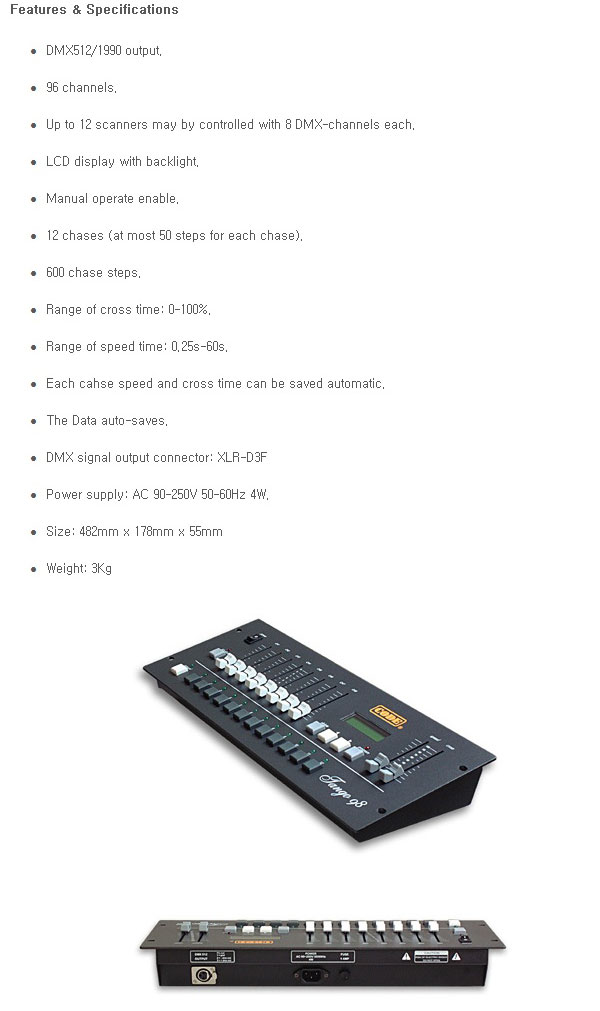 Á¦Ç°¸í : ¹«´ëÁ¶¸í ÄÜÆ®·Ñ·¯ Á¦Ç°¹øÈ£ : Tango 98 SCAN CONTROLLER Á¦Ç°Å©±â : 482*178*55