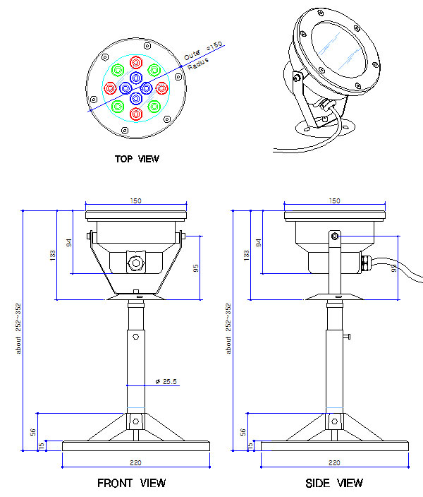 BODY : STAINLESS STEEL COVER & Aluminium Die Casting BODY DIFFUSER : TEMPERED GLASS POWER : 12W ÀÌÇÏ | LENS ANGLE : 10¢ª , 30¢ª , 60¢ª , 120¢ª COLOR : RGB COLOR CHANGE , R,G, B, A, W VOLTAGE : AC220V / DC24V (¡Øµî±â±¸ »ö»ó, Ä¡¼ö µî »ç¾çÀÌ Á¶±Ý ´Ù¸¦ ¼ö ÀÖ½À´Ï´Ù)